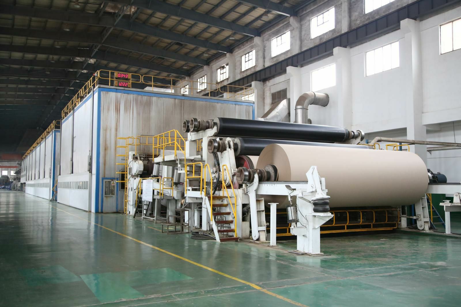 PM7造纸生产线,纸机为四川乐山成发制造的四叠网长网机,幅宽5.8米,目前最高运行生产车速370米/分,年产35万吨,生产360、420克纱管纸,280-650克单面灰板纸。纸机通过处理消耗各台纸机及污水的渣浆、污泥,实现了绿色环保造纸,取得良好的经济效益和社会环境效益。